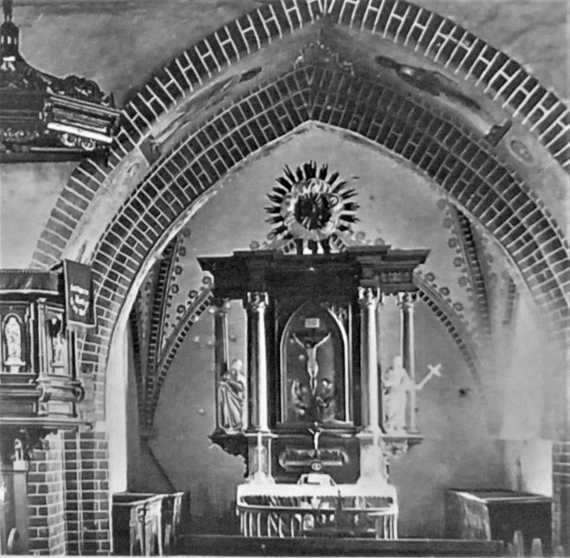 - Der Altar wich einem schlichten Ziegel-Block mit lutherisch pietistischem Schmuck.