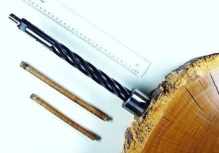 Vergleichbar mit einen 20 Kilometer langen „bar-code“ reihen sich die Jahresringe der Eichen aneinander. Je nach Klimaverhältnissen war das Wachstum gut oder weniger gut, d.h. die Jahresringe waren mal breit und mal schmalen. Legt man seine Bohrprobe an diesen bar-code