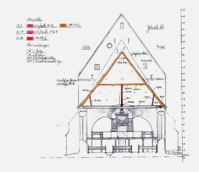 Der Dachstuhl wurde laut Aufzeichnungen von Herrn Gesatzky im Jahre 1828 komplett erneuert