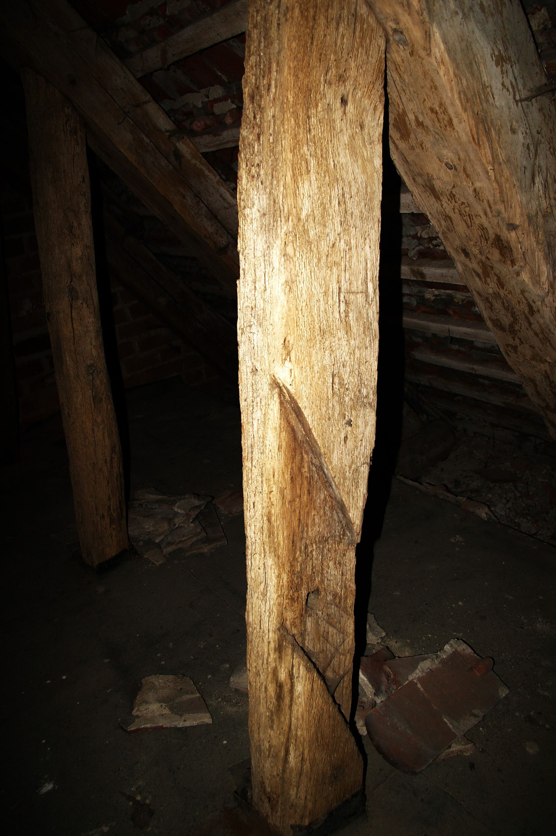 1. Historische Balken im Dachstuhl der Kirche