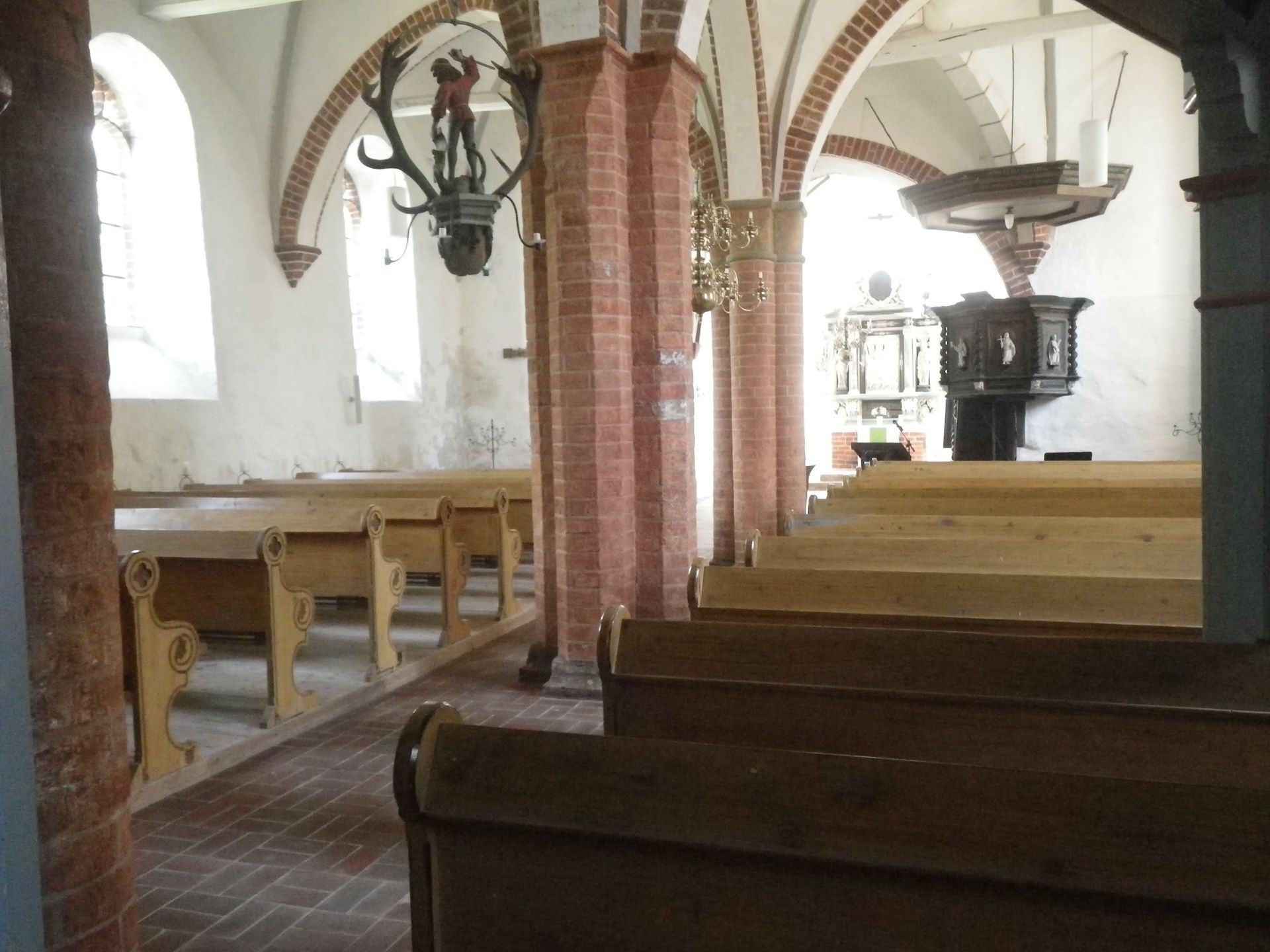 - Im Kirchenschiff wurde eine U-förmige Empore errichtet, die fast das gesamte Kirchenschiff einnahm. An der westlichen Stirnseite wurde eine große Orgel eingebaut, die später durch eine gebrauchte Friese-Orgel ersetzt wurde.